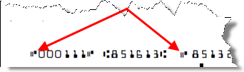 Bei manchen Banken ist es erforderlich, dass das Symbol "On-Us" in der MICR-Zeile vor der Kontonummer erscheint. Das On-US-Symbol sieht aus wie 2 kurze parallele Linien und ein durchgezogenes Rechteck.