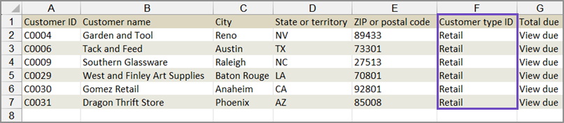 Aktualisieren Sie in der exportierten Datei die Kundentyp-ID-Spalte mit den entsprechenden Informationen für jeden Kunden.