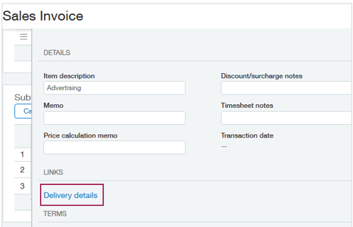 Benutzer können ihre*n Intacct-Administrator*in fragen, ob die ereignisbasierte Realisierung aktiviert ist, oder sie können eine Auftragserfassungs-Transaktion öffnen und nachsehen, ob es einen Lieferdetails Link in der Verknüpfungen Abschnitt für eine Einzelposition.