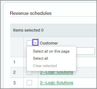 Wir haben mehr Auswahlmöglichkeiten auf der Seite "Zeitpläne verwalten" hinzugefügt, sodass Sie eine große Anzahl von Zeilen effizient auswählen können. Jetzt können Sie den Pfeil neben dem Kontrollkästchen in der Tabellenkopfzeile verwenden, um die folgenden Aktionen auszuführen:
