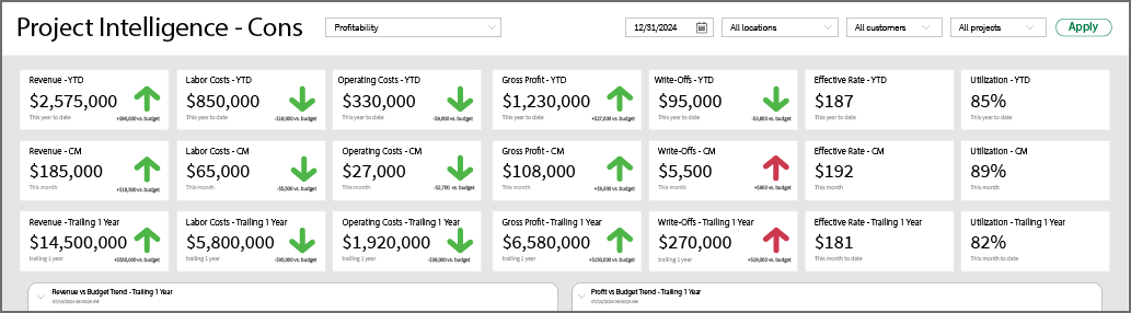 Konsolidierte Dashboards in Sage Intacct Project Intelligence