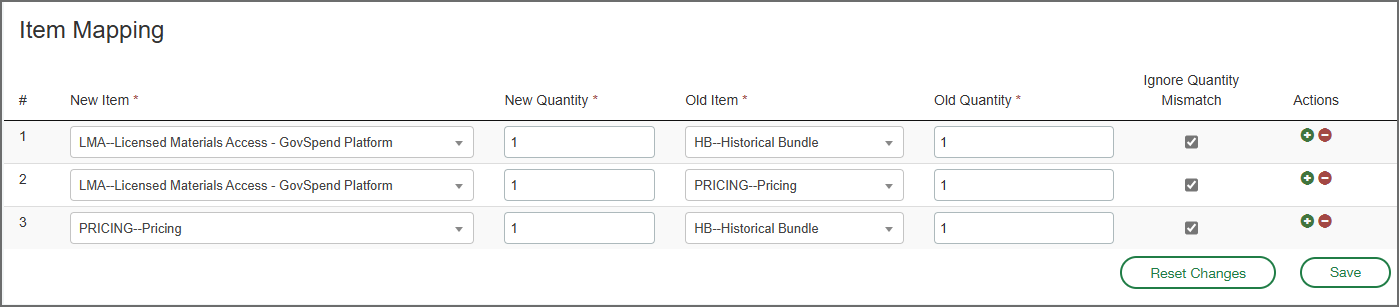 Auf der Seite "Artikelzuordnung" oder "Artikelbündel" richten Sie die Zuordnung oder Bündelung ein, indem Sie die alten und neuen Artikel und weitere zugehörige Informationen (z. B. Artikelmengen) angeben.