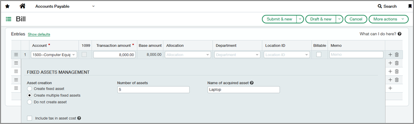 Aktivposten werden häufig in großen Mengen gekauft und in einer Zeile eingegeben, müssen jedoch separat nachverfolgt und abgeschrieben werden. Wir haben die Option hinzugefügt, mehrere Aktivposten aus einer einzigen Transaktionsposition zu generieren, um Zeit zu sparen und eine genaue Nachverfolgung von Aktivposten zu gewährleisten.