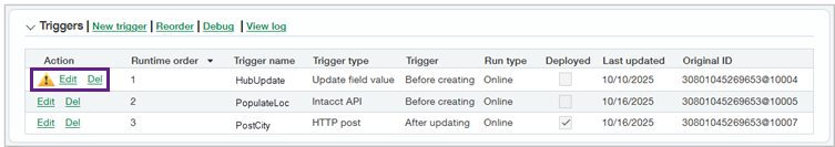 Wenn Sie einen Auslöser erstellen, werden Felder, die zu Datenfehlern führen können, nicht mehr als Optionen in der Benutzeroberfläche angezeigt. Vorhandene Auslöser, die potentiell problematische Felder enthalten, zeigen jetzt ein Warnsymbol an. Sage Intacct empfiehlt, diese Auslöser zu aktualisieren, um eine ordnungsgemäße Funktionsweise sicherzustellen.