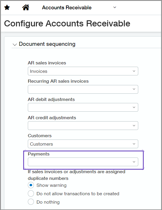 Select the new document sequencing option for Payments.