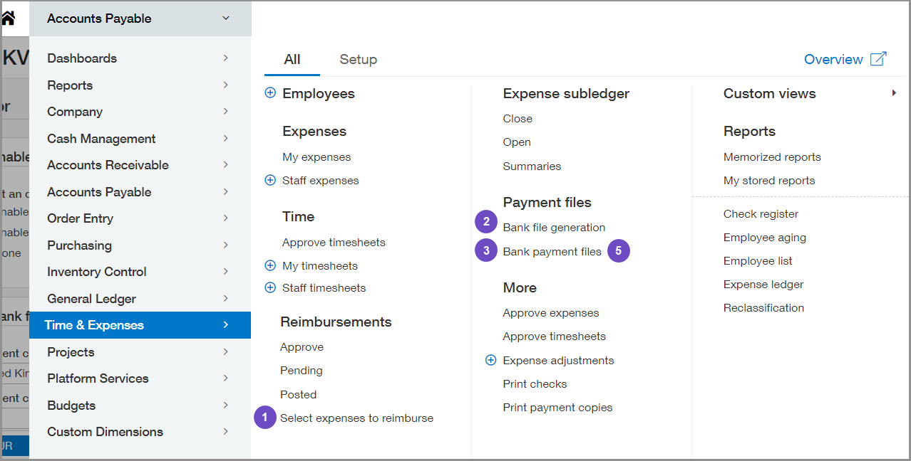 If you use bank files, you can now use them in Time and Expenses to pay employee expense reimbursements.