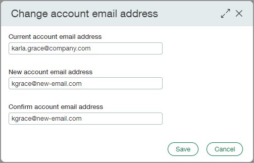 Company admins can update the new account email address directly. Individual users can update their email addresses on the My Preferences page.