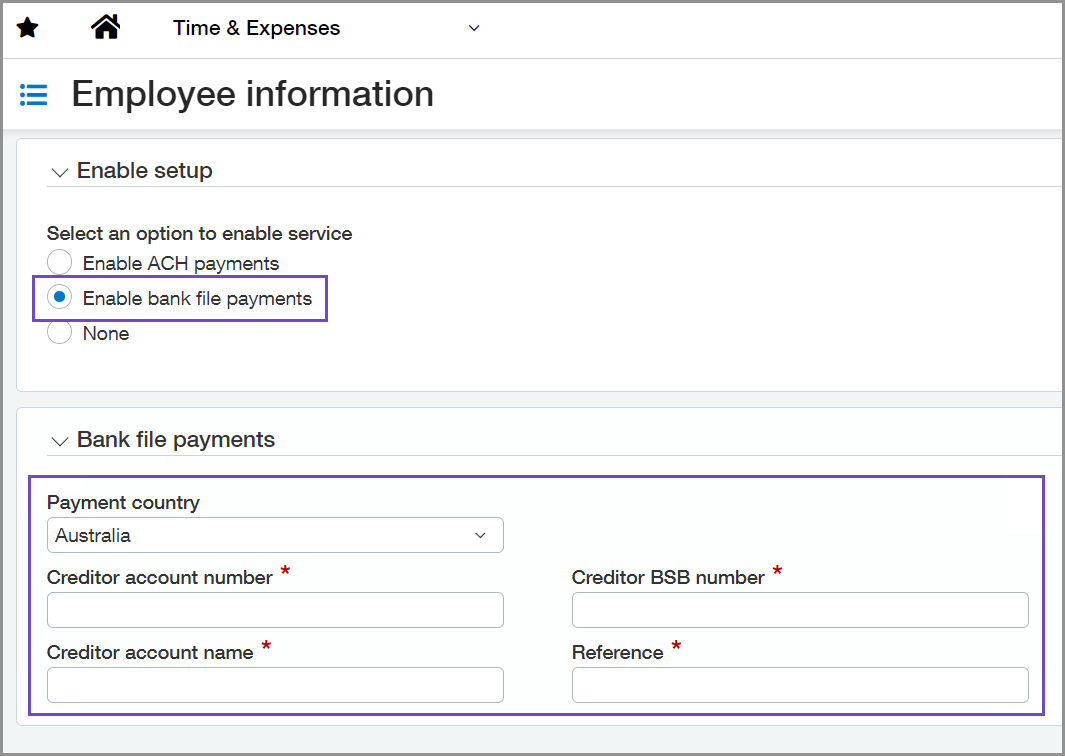 If you use bank files, you can now use them in Time and Expenses to pay employee expense reimbursements.