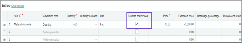 After, when you convert a transaction in Order Entry, you'll see the new Reverse conversion column available. Select this option and enter a negative amount to adjust the original conversion entry.