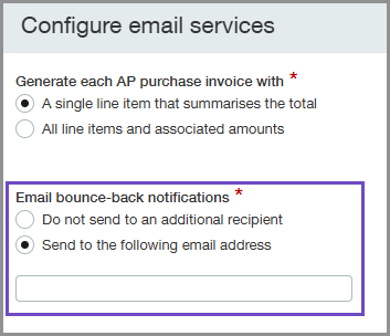 Enter the email address to which you want to send notifications when email documents bounce back.