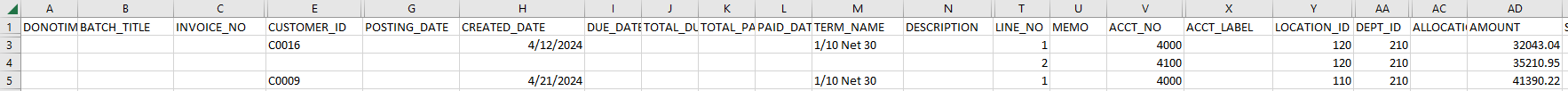 For information on the actual fields required in the CSV import file, see CSV import: Accounts Receivable invoices.