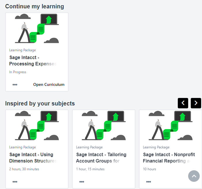 Your Sage University learner home provides you with an intuitive hub to help you navigate and customize your learning with Sage University.