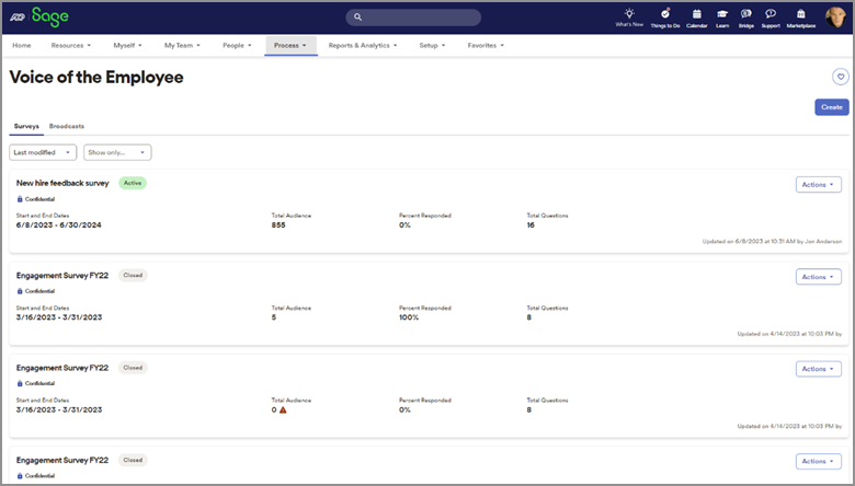 With Voice of the Employee, you can collect feedback from employees and gauge their sentiment throughout the employee life cycle. The response analytics provide insight to help you make more informed decisions.