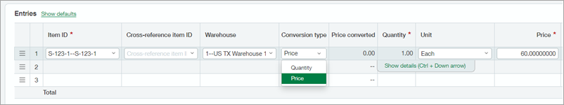 - Configure Order Entry and Purchasing to enable conversion by price for non-inventory items.
