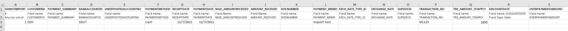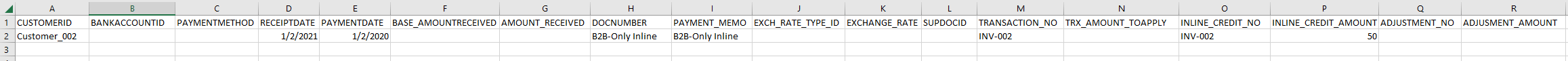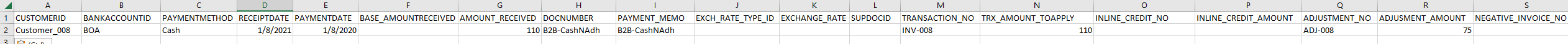 You can import payments for unique AR sales invoice number or adjustment number transactions only. If there are multiple AR sales invoices or adjustments with the same reference number, the import will be unsuccessful.