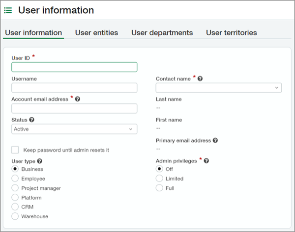 We've also updated the User information page. The update to the User information page makes it easier to enter and manage user account details.