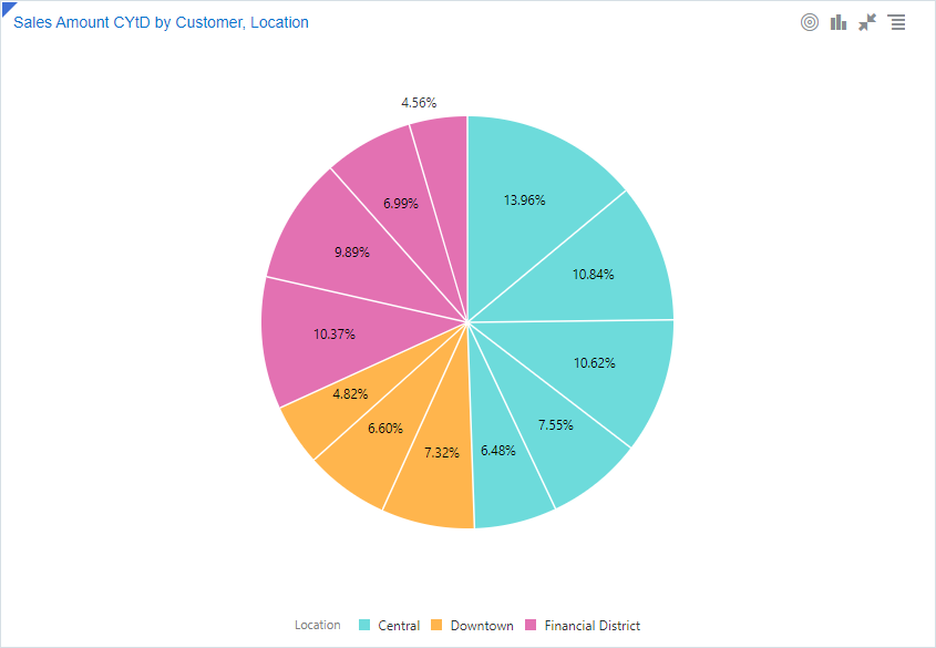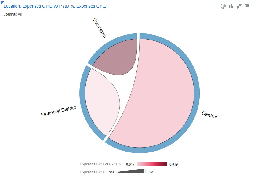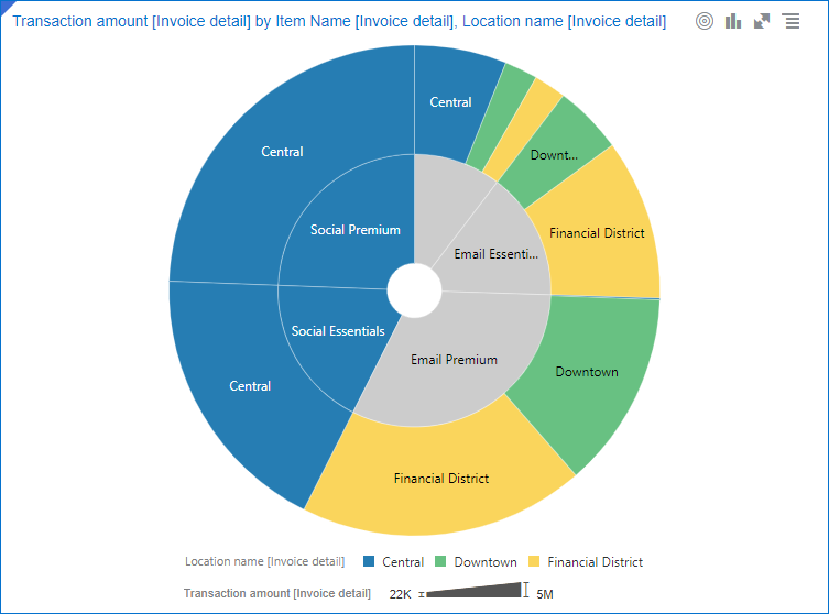 Los rayos solares son otra forma de representar datos jerárquicos. Cada nivel de la jerarquía está representado por un anillo o círculo, con el círculo más interno como la parte superior de la jerarquía. |