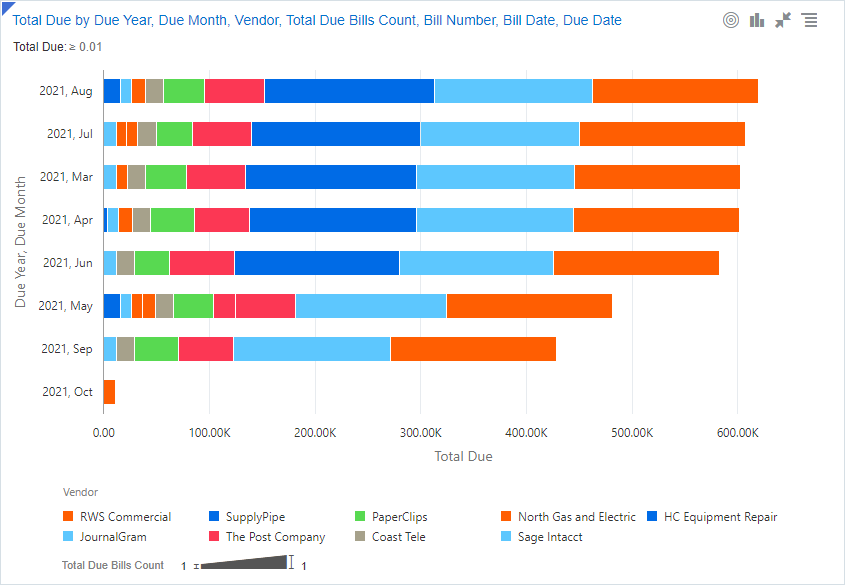 El gráfico de categorías apiladas muestra el total o el promedio de cada categoría. La altura representa el volumen de los valores numéricos. |
