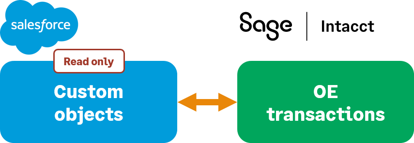 Las transacciones de pedidos de Sage Intacct se sincronizan con objetos personalizados proporcionados por Intacct en Salesforce.