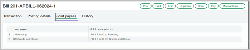 - Sélectionnez un Mode de paiement par chèque commun pour payer les factures de construction. Si votre entreprise n'a pas créé de chèque communs, vous pouvez supprimer les cobénéficiaires sur la facture des CF jusqu'à ce que vous postiez un chèque pour le cobénéficiaire.