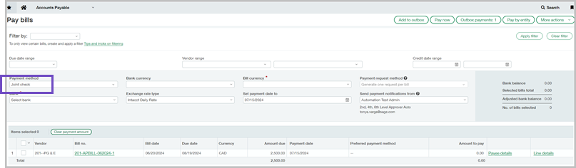 Intacct ne crée qu’un seul chèque par facture fournisseur et par co-bénéficiaire.
