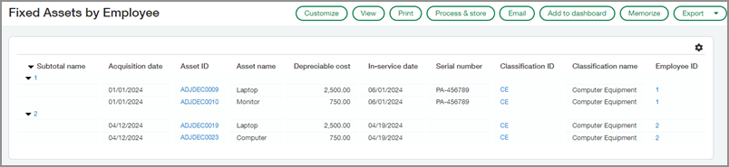 Désormais, vous pouvez obtenir des informations plus approfondies sur les immobilisations de votre entreprise et gagner du temps en utilisant ces nouveaux rapports comme base pour créer vos propres rapports personnalisés.
